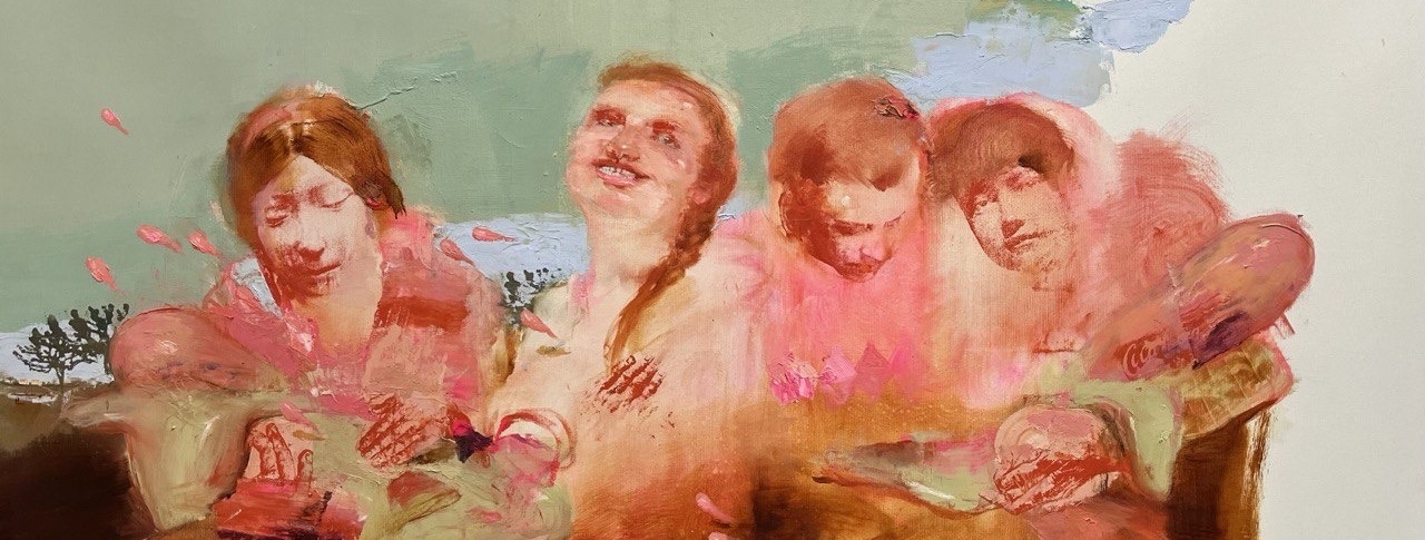 Живописный язык Спечинской балансирует на границе устойчивости и распада. Фигуры на её полотнах словно растворяются в краске. Лица могут быть размыты, как будто сама идентичность здесь нестабильна. Цвета напоминают одновременно румянец кожи и неоновый свет — как если бы жизнь подсвечивалась изнутри чем-то тревожным и слегка искусственным.